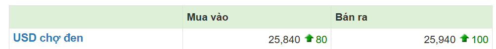 Lưu ý đây là giá giao dịch tại thị trường chợ đen. Tại các quầy giao dịch chính thống của ngân hàng, giá đô mua vào đang dao động trong khoảng 25,340-25,350 tùy ngân hàng và giá đô bán ra dao động trong khoảng 25,710 -25,740 tùy ngân hàng.